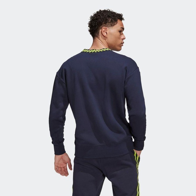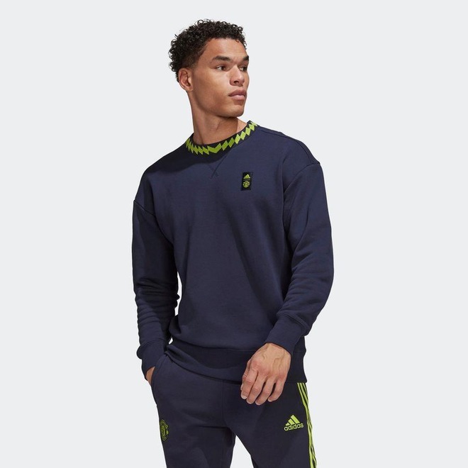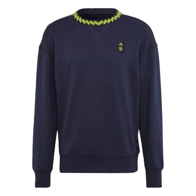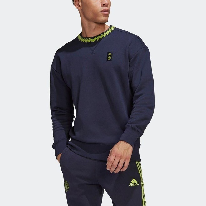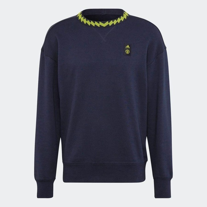 Criado para conforto em qualquer ocasião, ele é confeccionado em moletinho macio e tem gola canelada que, se você olhar de perto, exibe uma outra conexão sutil com o estádio Old Trafford.