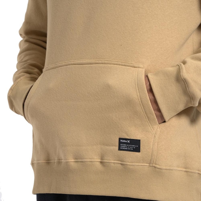 Moletom Hurley fechado 250g felpado, estampa frontal, capuz com cordão e bolso canguru com etiqueta.