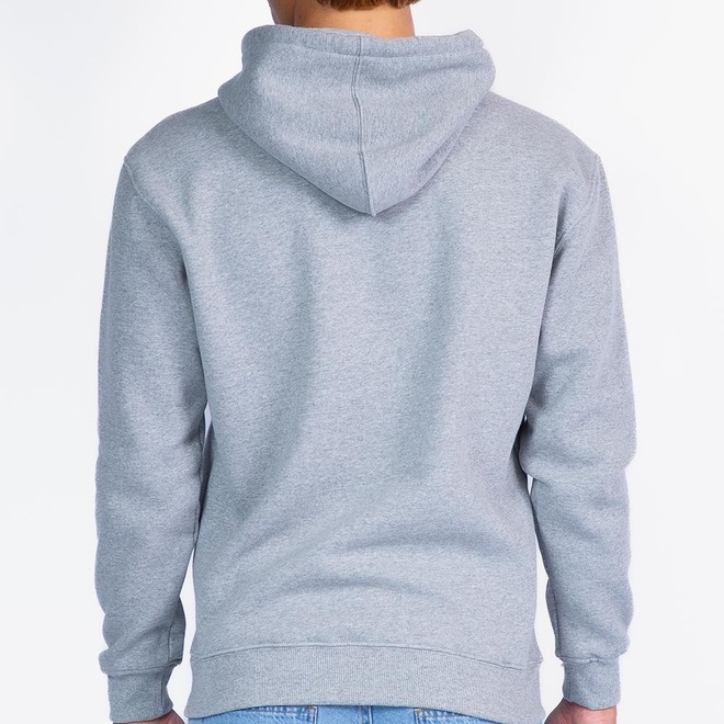 Moletom Rip Curl Fechado 250g, logo em relevo no peito, ajuste de cordão no capuz, cordão com ponteira de metal e etiquetas personalizadas.