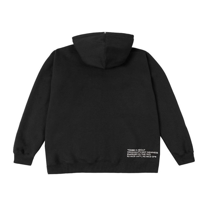 Moletom MCD felpado, com estampa na parte frontal, capuz e etiquetas personalizadas.