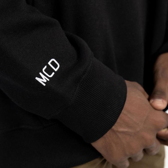 Moletom MCD felpado, bolsos frontais, silk frontal e etiquetas personalizadas.