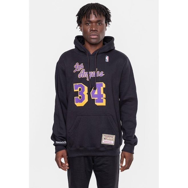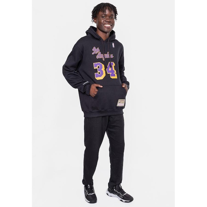 Moletom Mitchell & Ness Nba Masculino Shaquille ONeal Los Angeles Lakers Preto - Mitchell & NessTrazendo produtos licenciados pela NBA, a Mitchell & Ness complementa o seu look com inspiração esportiva com o Moletom para aquecer os dias mais frios.