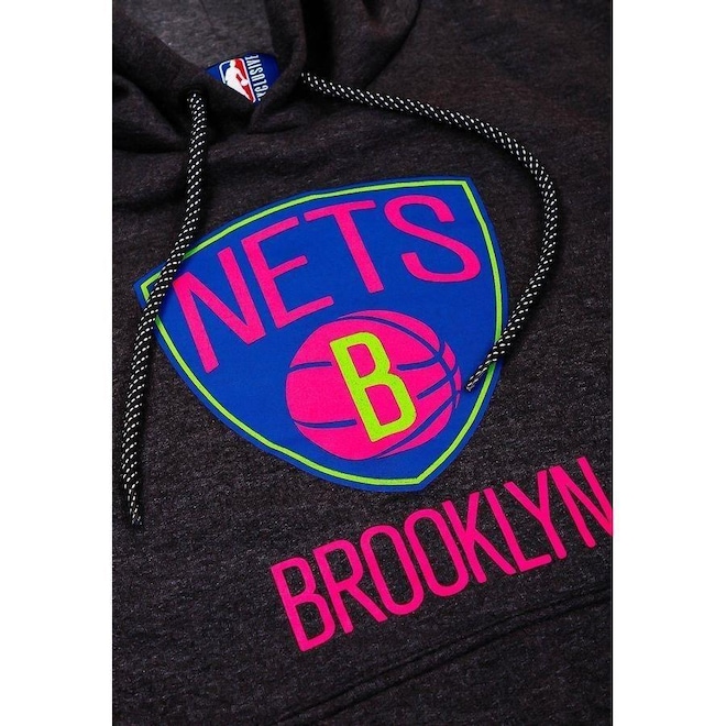 Blusão de Moletom com Capuz NBA Neon Colors Nets Grafite - Masculino