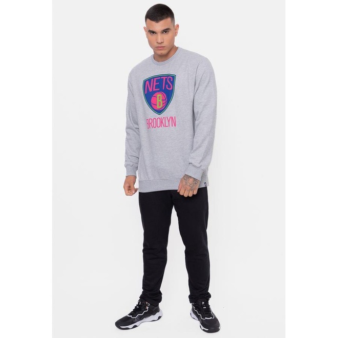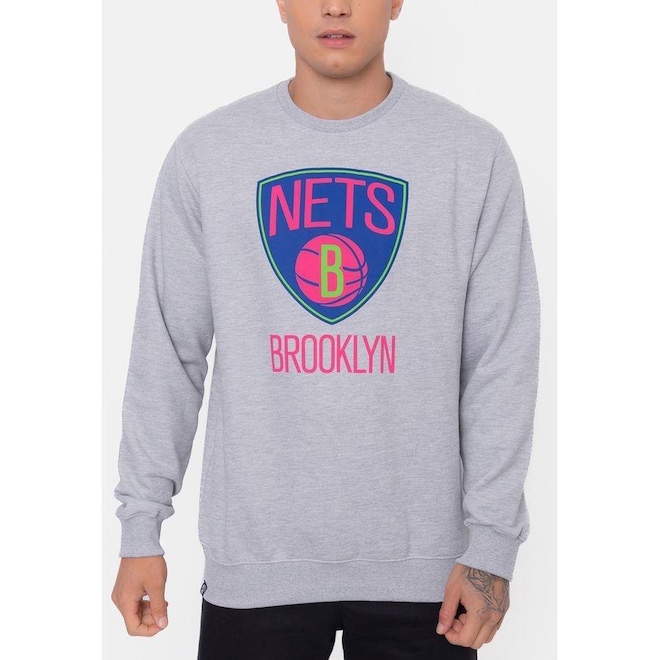 Blusão de Moletom NBA Neon Colors Brooklyn Nets Cinza Mescla - Masculina