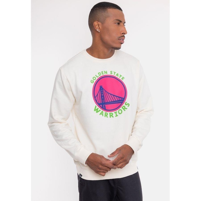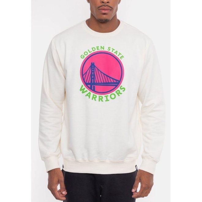 Blusão de Moletom NBA Neon Colors Golden State Warriors Off White - Masculina