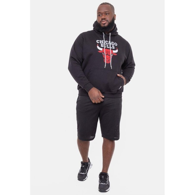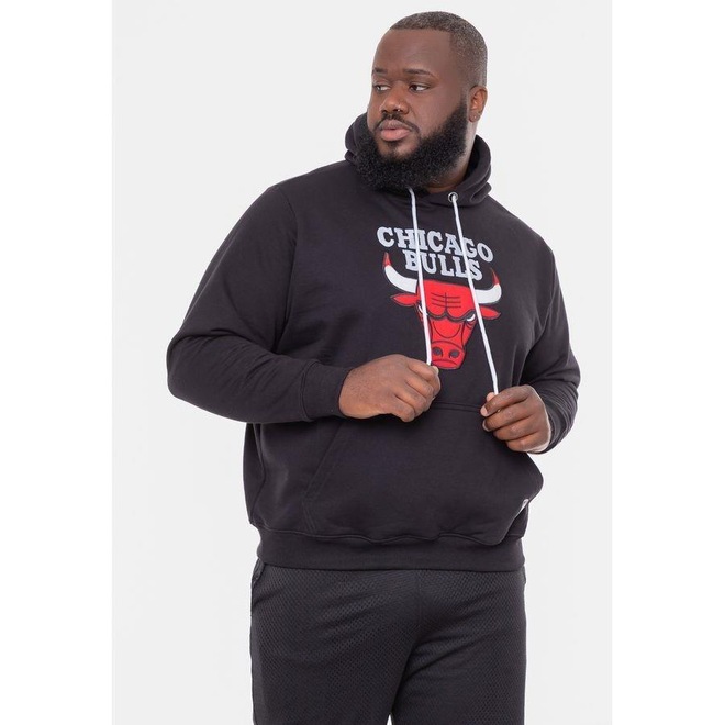 Blusão de Moletom com Capuz NBA Plus Size Com Feltro Logo Chicago Bulls Preto - Masculina