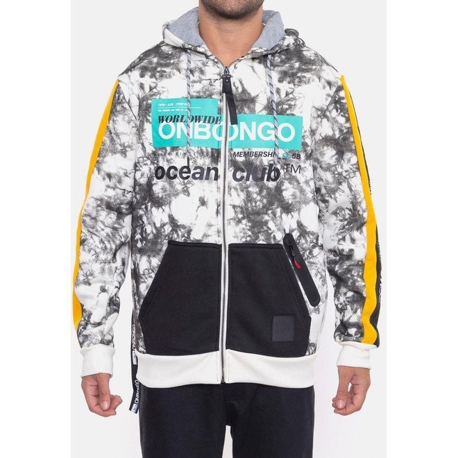 Jaqueta de Moletom com Capuz Onbongo Canguru Aberto Branco - Masculina