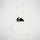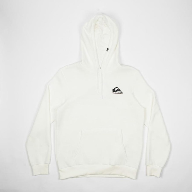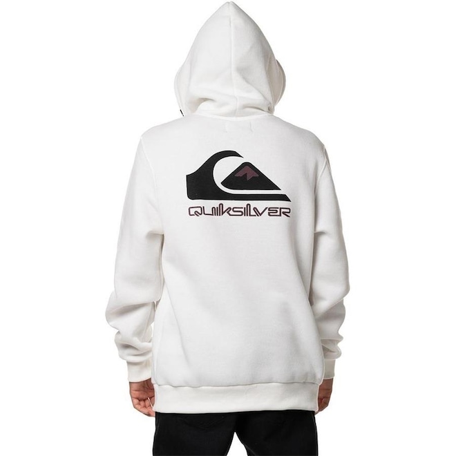 Moletom QuikSilver feito em modelagem regular, 305G, silk 2 cores no peito e silk duas cores centralizado nas costas e etiqueta aplicada no capuz.