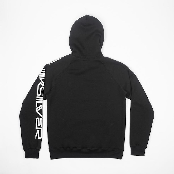 Moletom QuikSilver feito em modelagem regular, 305G, silk 1 cor na manga esquerda e no capuz e etiqueta aplicada no capuz.