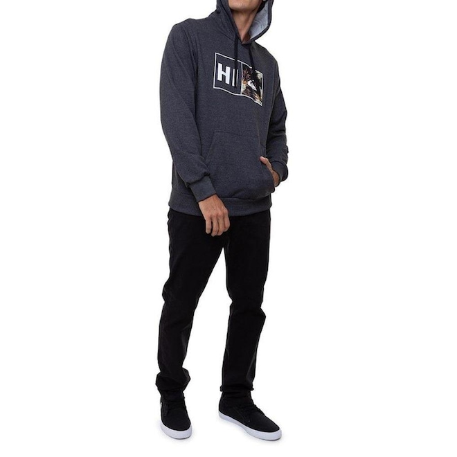 Moletom Quiksilver com bolso canguru, modelagem regular, silk no peito e etiqueta palito na barra.