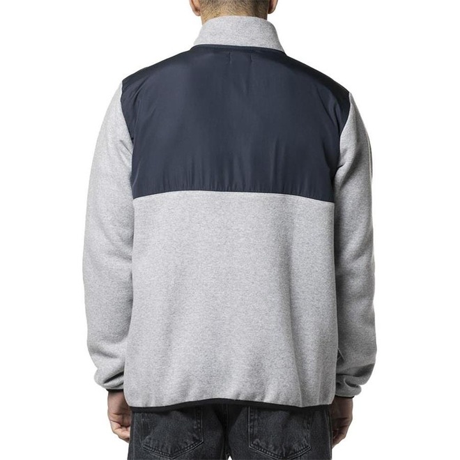 Moletom RVCA Aberto feito em tecido mescla diferenciado com recorte no busto em nylon, 300G, gola alta, bolso laterais embutidos, bolso com lapela aplicado no peito com bordado, punhos e barra com elástico e etiqueta personalizada.