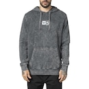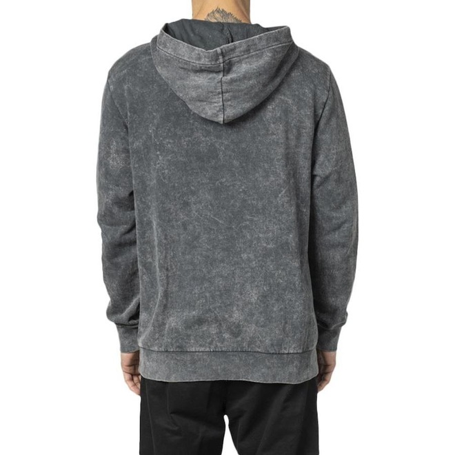 Moletom RVCA canguru fechado com lavagem marmorizada, estampa logo frontal, punhos em ribana na barra da manga e corpo e etiqueta personalizadas.