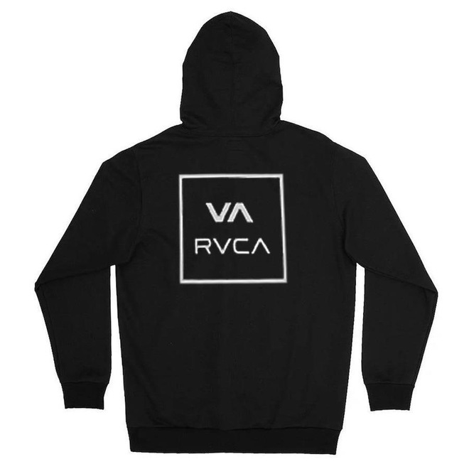 Moletom canguru fechado 250g, estampa silk RVCA frente e costas, punhos em ribana na barra da manga e corpo e etiqueta personalizada.