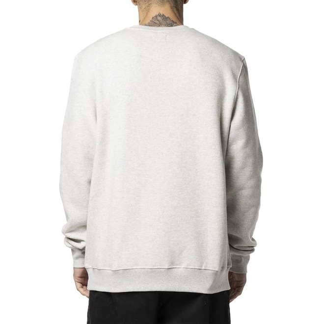 Moletom RVCA careca com 290 gramas, em tecido diferenciado mescla, etiqueta localizada no peito, ribana na barra da manga e corpo e etiquetas personalizadas.