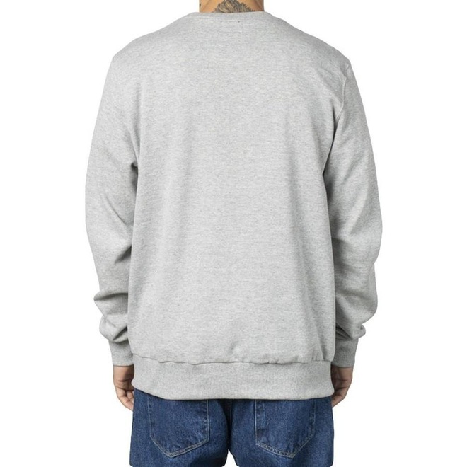 Moletom careca 320g mescla, silk puff logo RVCA na frente, etiqueta interna personalizada, punhos em ribana na barra da manga e corpo, além de etiquetas personalizadas.