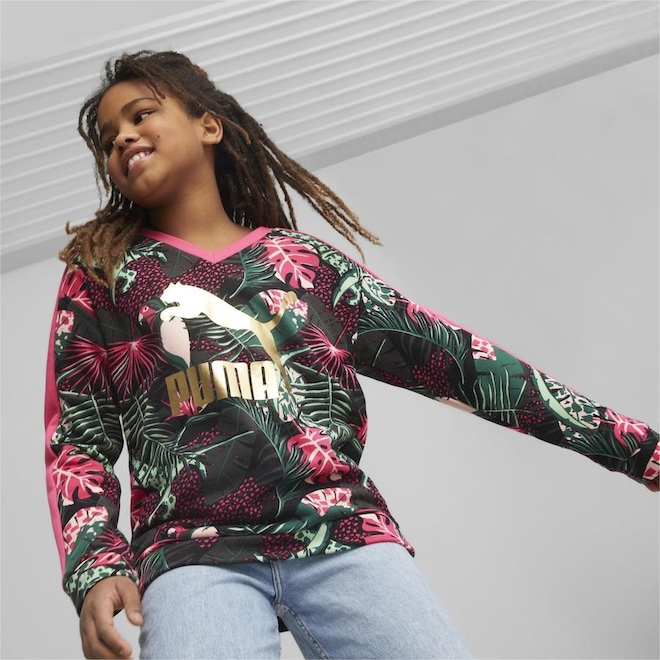 Blusão de Moletom Puma T7 Vacay Queen Printed V-Neck Terry - Infantil