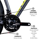 Ainda conta com câmbio dianteiro Shimano TY-700 3V e traseiro Shimano RD-TX800 8V, corrente Shimano CN-HG40 e pedivela Shimano 42/34/24T FC-TY301. Está esperando o que? Compre já sua Mountain Bike Groove e se apaixone ainda mais pelo ciclismo!ref: 971601