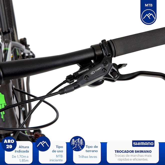 Conheça a Mountain Bike Caloi 29 - Aro 29 - Freio a Disco Hidráulico - Câmbio Shimano Tourney!
