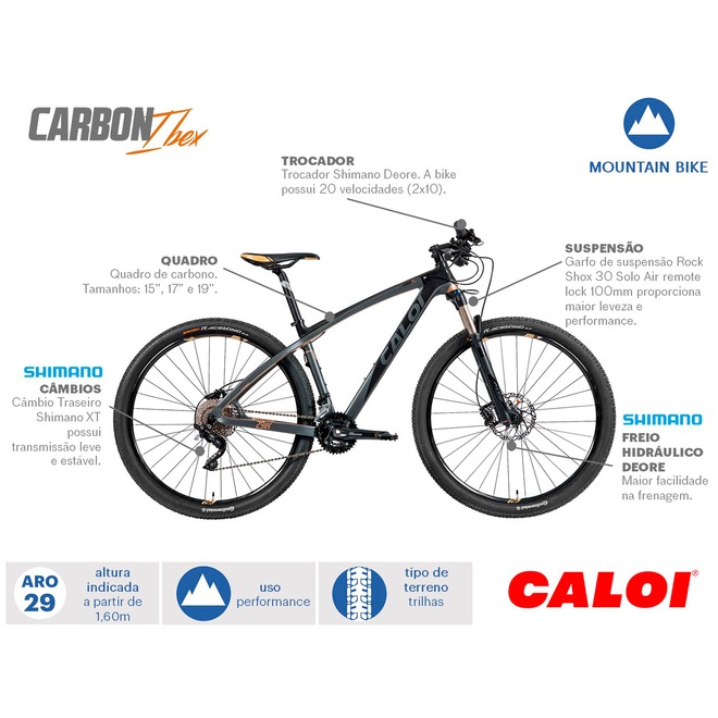 Mountain Bike Caloi Carbon Ibex - Aro 29 - Freio Shimano Hidráulico - Câmbio Shimano - 20 Marchas - Foto 1