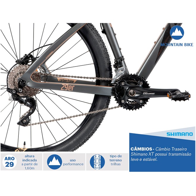 3. Mountain Bike Caloi Carbon Ibex - Aro 29 - Freio Shimano Hidráulico - Câmbio Shimano - 20 Marchas - Foto 3