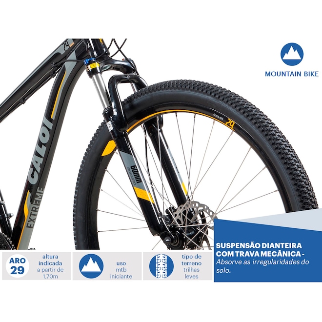 Conheça a Mountain Bike Caloi Extreme - Aro 29 - Freio Disco Hidráulico - Câmbio Shimano Tourney - 21 Marchas!
