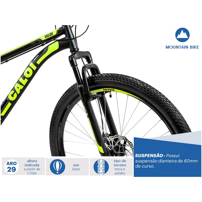 Confira a Mountain Bike Caloi Velox - Aro 29 - Freio a Disco Mecânico - 21 Marchas!