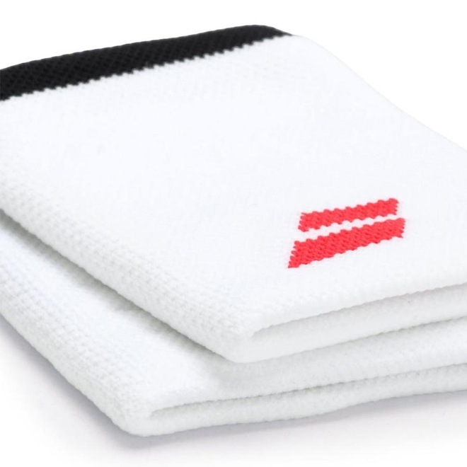 - Detalhamento: Pacote com 02 munhequeiras, formato anatômico ao pulso, atoalhada, logo Babolat bordado na parte frontal, munhequeira na cor Branca com detalhes em vermelho;