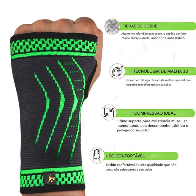 Esta munhequeira é um produto ortopédico, utilizada na Prevenção e Tratamento de Afecções leves do Punho, que acontecem geralmente na prática esportiva, e lesões causadas por esforços repetitivos L.E.R. ( São doenças como Pulso Aberto e Tendinite).