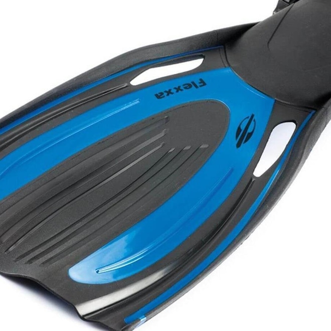 A Nadadeira Flexxxa Mormaii é indicada para Mergulhos autônomos. Sua calçadeira é confortável, exige o uso de uma bota de neoprene. Ajustável através de um sistema de tiras tipo QUICK RELEASE