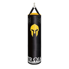 Saco de Pancada Troia Profissional - 120cm O KIT ACOMPANHA: ? Um saco de pancada enviado VAZIO* ? Gancho S FICHA TÉCNICA: ? Rebites nas alças em aço. ? Alça reforçada com costura dupla ? 04 pontas de apoio. ? Duas meias argolas costuradas às alças do saco. ? Zíper éclair na parte superior facilitand