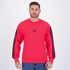 Blusão de Moletom Adidas 3S - Masculino Composição: 55% Algodão, 36% Poliéster e 09% Viscose Cor predominante: Vermelha Indicado para: Casual Origem: Importada Gênero: Masculino Logo: Bordada Manga: Longa Gola: Careca Capuz: Não Dimensões aproximadas (A x L): P: 68 x 56 cm M: 70 x 58 cm G: 72 x 60