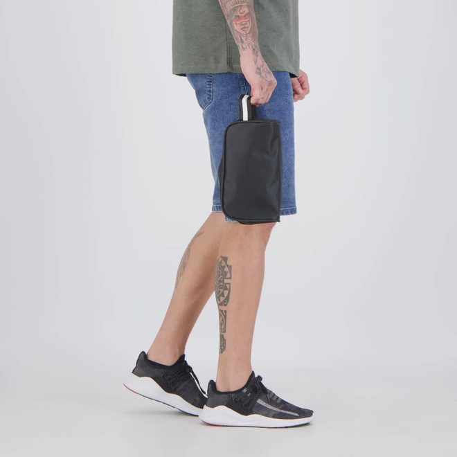 Dimensões Aproximadas (A x L x C): 14 x 10 x 24 cmComposição: 35% Poliéster e 65% PVC (policloreto de vinila)Cor predominante: Preta Peso aproximado: 170gCompartimento: ÚnicoOrigem: NacionalEscudo: BordadoClube: Botafogo