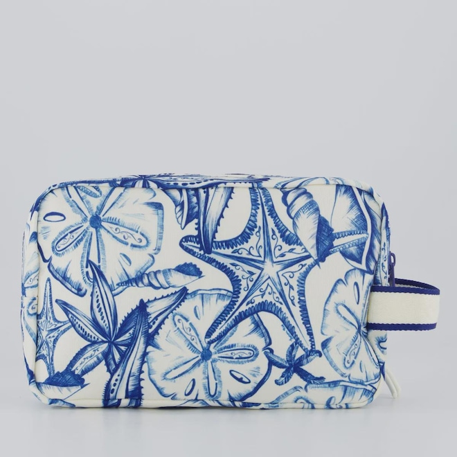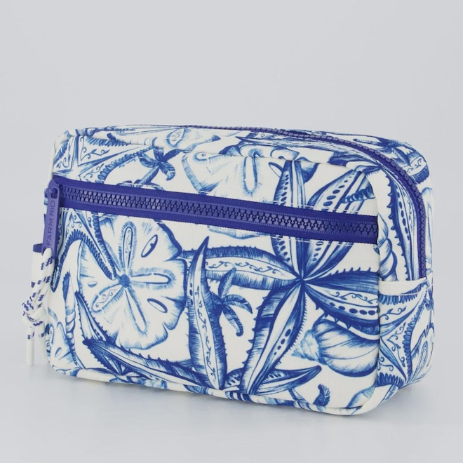 Dimensões aproximadas (A x L): 13cm x 22cm Cor predominante: Off White e Azul Compartimento: Um principal amplo Composição: 100% Poliéster Abertura/fechamento: Zíper Indicado para: Casual Alças: Uma, para mãos Bolsos: Um interno Logo: Emborrachada Origem: Importada Tamanho único