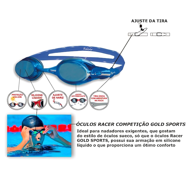 Óculos de Natação Gold Sports Competição Racer - Foto 1