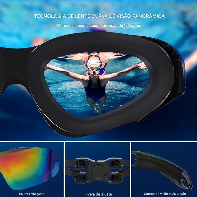 O Óculos de Natação Gold Sports Fashion Pro Performance 8.0 são projetados para atender às necessidades dos nadadores profissionais, com uma tecnologia anti-neblina inovadora que garante uma visão clara, mesmo nas condições mais desafiadoras. Equipado com lentes de grande angular, anti-fog e de alta definição: Mergulhe em águas cristalinas com a ajuda de nossa grande angular, anti-neblina, e lentes de alta definição que proporcionam uma experiência subaquática nítida e imersiva. Os óculos são criados com um material de silicone macio e durável que se encaixa confortavelmente ao redor dos olhos sem causar irritação ou desconforto, permitindo que você nade por horas. Nosso óculos é monobloco é projetado em uma ínica peça o que o torna mais resistente ao envelhecimento e capaz de se adaptar a qualquer formato de rosto. Pode ser facilmente ajustado e dobrado para garantir um ajuste perfeito e seguro e com design elegante. Possui um design de perfil baixo melhorando seu deslizar através da água. Nosso óculos de natação são perfeitos para uma variedade de atividades aquáticas, incluindo natação, mergulho, Triatlon e muito mais. Se você é um iniciante ou um profissional experiente, nossos óculo é projetados para atender às suas necessidades e ajudá-lo a executar o seu melhor. Suas lentes são confeccionadas em policarbonato de ultima geração proporcionando uma visão HD, lentes com duas camadas anti-fog e uma camada protetora contra raios UVA e UVB 400. O policarbonato de ultima geração das sua lentes proporcionando uma visão HD. Armação em silicone ultra soft 3D aderindo melhor a cavidade ocular sem irritar a pele e permitindo um excelente vedação as tiras duplas são em silicone ultra soft com ajuste rápido.