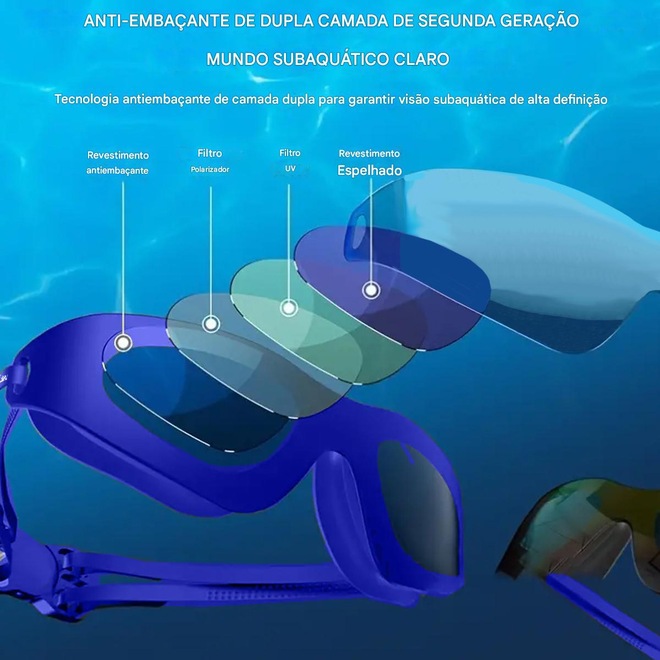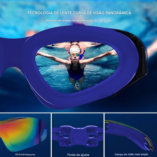 O Óculos de Natação Gold Sports Fashion Pro Performance 8.0 são projetados para atender às necessidades dos nadadores profissionais, com uma tecnologia anti-neblina inovadora que garante uma visão clara, mesmo nas condições mais desafiadoras. Equipado com lentes de grande angular, anti-fog e de alta definição: Mergulhe em águas cristalinas com a ajuda de nossa grande angular, anti-neblina, e lentes de alta definição que proporcionam uma experiência subaquática nítida e imersiva. Os óculos são criados com um material de silicone macio e durável que se encaixa confortavelmente ao redor dos olhos sem causar irritação ou desconforto, permitindo que você nade por horas. Nosso óculos é monobloco é projetado em uma ínica peça o que o torna mais resistente ao envelhecimento e capaz de se adaptar a qualquer formato de rosto. Pode ser facilmente ajustado e dobrado para garantir um ajuste perfeito e seguro e com design elegante. Possui um design de perfil baixo melhorando seu deslizar através da água. Nosso óculos de natação são perfeitos para uma variedade de atividades aquáticas, incluindo natação, mergulho, Triatlon e muito mais. Se você é um iniciante ou um profissional experiente, nossos óculo é projetados para atender às suas necessidades e ajudá-lo a executar o seu melhor. Suas lentes são confeccionadas em policarbonato de ultima geração proporcionando uma visão HD, lentes com duas camadas anti-fog e uma camada protetora contra raios UVA e UVB 400. O policarbonato de ultima geração das sua lentes proporcionando uma visão HD. Armação em silicone ultra soft 3D aderindo melhor a cavidade ocular sem irritar a pele e permitindo um excelente vedação as tiras duplas são em silicone ultra soft com ajuste rápido.