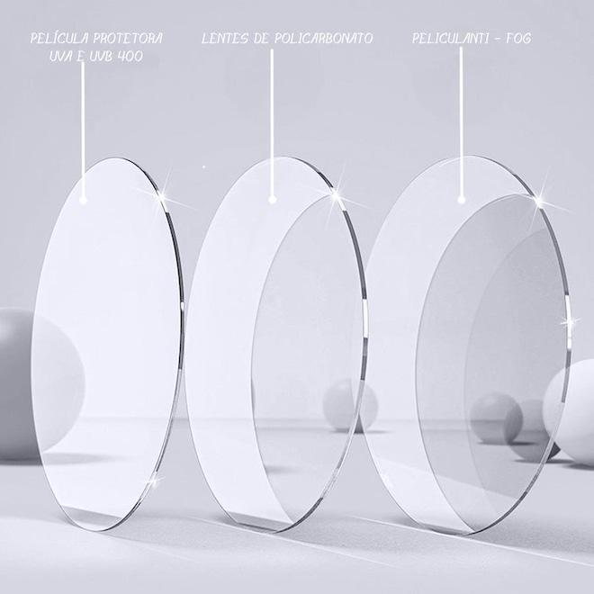 Composição: policabornato, silicone Liquido, e poli propileno