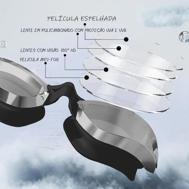 Óculos De Natação Gold Sports Legend Demi Mirror High Definition Características: * 100% Silicone Ultra Soft (produzindo em uma tecnologia inovadora e de alta qualidade). * Possui um frame com gasckets projetado em design 3D impedindo a entrada de água e se adequa a qualquer rosto. Perfeito para natação. * Acessório muito necessário e útil para adultos para nadar e mergulhar. * Lentes em poli carbonato lentes espelhadas com 100% proteção UVA. E UVB400 alem de ter uma camada de anti-embaçante ultra Pro. * Lentes com tecnologia HIGH DEFINITION, permite uma visão limpída e nitída embaixo da água pacote inclui: 1 óculos de natação 1 Caixa de Poli carbonato de transporte para seu óculos de natação Seguro e confortável - A narizeira é flexível de silicone e mais alto, fornecem o conforto extremo que nunca ferem seu nariz ou deixam uma marca em seu rosto. Sem vazamento - Resistência melhorada em vedação a sucção excelente. A Armação é de silicone de memória (não deforma e sempre volta para seu formato original) macia e a Gasckets de dois andares garantem um ajuste confortável em diferentes formas de rosto e mantêm a água fora dos óculos de natação para que você possa nadar livremente e com conforto. Anti-Fog & Proteção UV - As superfícies internas das lentes são revestidas pela mais recente Tecnologia de Tratamento Ambiental, que evita o embaçamento dos óculos natação e não machuca seu rosto. As superfícies externas são revestidas das lentes com proteção UVA E UVB400 que pode proteger seus olhos da água da piscina, luz do sol e luzes brilhantes prejudiciais. Fácil Ajuste e Aberto - As Tiras são de silicone com ajuste rápido e podem facilmente ser ajustadas. A Presilia de pressão rápida facilita o ajuste da pressão e um encaixe perfeito na cavidade ocular. Ao contrário dos designs de ajuste dos modelos antigos, o botão rápido é fácil de usar e não puxa o cabelo. Pacote e Serviço -Vem com1 caixa portátil. Fácil de transportar. Composição - Poli carbonato e silicone Ultra Soft Marca -Gold Sports Garantia - 01 mês de garantia após a compra mas somente contra defeito de fabricaçãoref: M0Z6U4