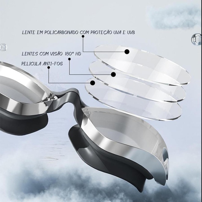 * Lentes com tecnologia HIGH DEFINITION, permite uma visão limpída e nitída embaixo da água