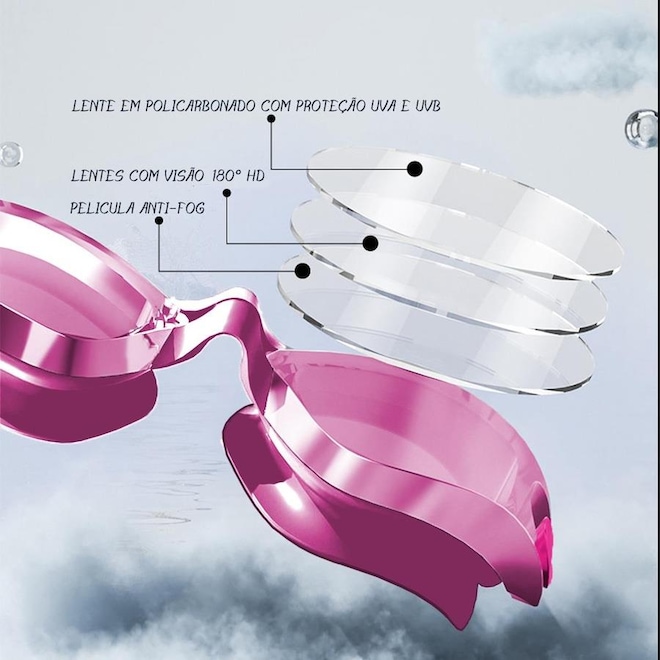 * Lentes com tecnologia HIGH DEFINITION, permite uma visão limpída e nitída embaixo da água