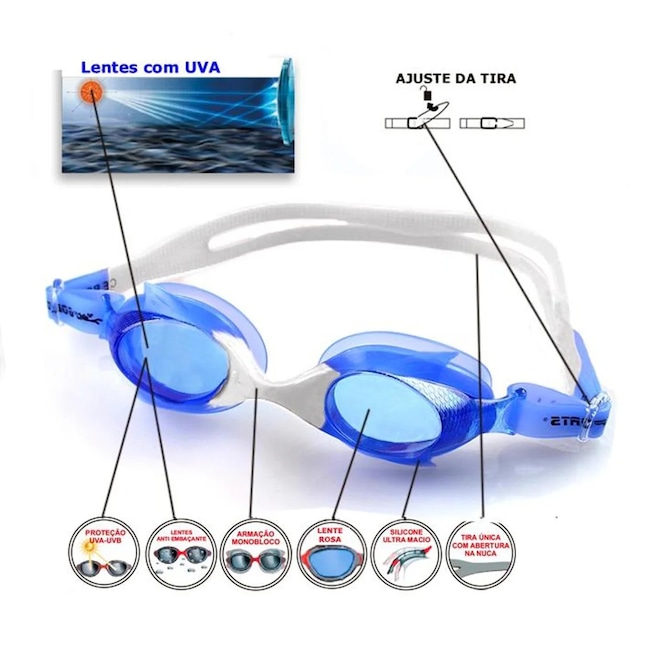 • Recurso anti embaçante: Equipados com recurso anti embaçante, esses óculos evitam o embaçamento durante o uso, proporcionando uma visão clara na água.