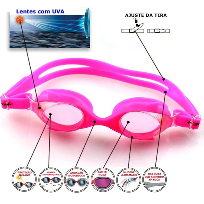 • Recurso anti embaçante: Equipados com recurso anti embaçante, esses óculos evitam o embaçamento durante o uso, proporcionando uma visão clara na água.
