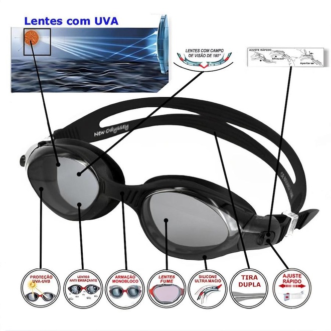 O Óculos De Natação Gold Sports Odyssey - High Definition 180° De Visão são projetados para atender às necessidades dos nadadores que desejam conforto, com uma tecnologia anti-neblina inovadora que garante uma visão clara, mesmo nas condições mais desafiadoras. Equipado com lentes de grande angular, anti-fog e de alta definição: Mergulhe em águas cristalinas com a ajuda de nossa grande angular, anti-fog, e lentes de alta definição que proporcionam uma experiência subaquática nítida e imersiva. Ajuste confortável: Os óculos são criados com um material de silicone macio e durável que se encaixa confortavelmente ao redor dos olhos sem causar irritação ou desconforto, permitindo que você nade por horas. Armação e tira em silicone de ultima geração ultra confortável e capaz de se adaptar a qualquer formato de rosto. Pode ser facilmente ajustado.Nossos óculos de natação apresentam um design elegante e moderno que é certo para virar a cabeça na piscina. Com uma escolha de cores elegantes e um ajuste de perfil Grande, você vai olhar e se sentir bem confortável em seu rosto podendo nadar por horas sen deixar marcas em seu rosto. Uso versátil. Nossos óculos de natação são perfeitos para uma variedade de atividades aquáticas, incluindo natação,Triatlon e muito mais. Se você é um iniciante ou um profissional experiente, nossos óculos são projetados para atender às suas necessidades e ajudá-lo a executar o seu melhor. Suas lentes são translucidas muito confortável para picinas fechadas, suas lentes são confeccionadas em poli carbonato de ultima geração proporcionando uma visão HD, lentes com duas camadas anti-fog, proteção UVA e UVB400, armação em em silicone liquido ultra soft, tiras duplas em silicone ultra soft com ajuste rápido.