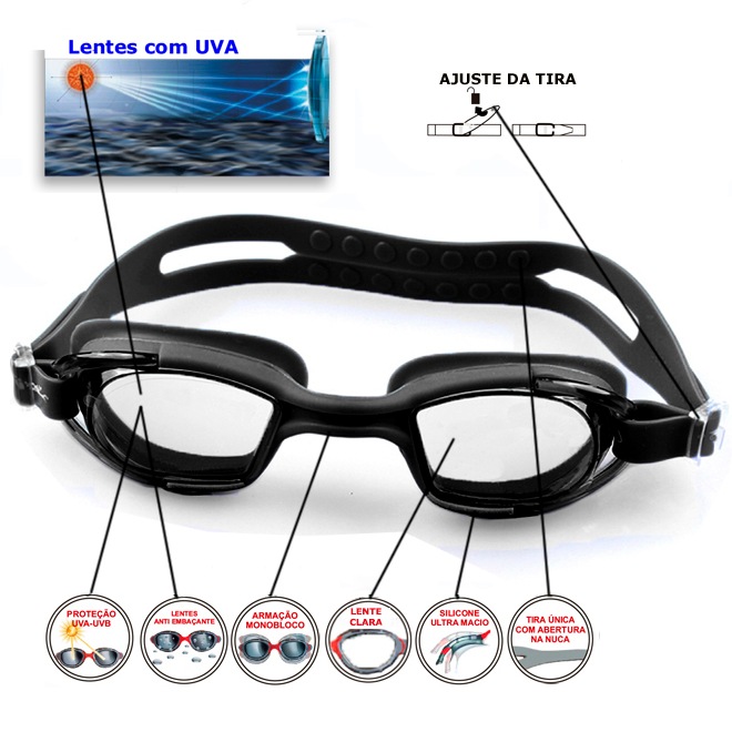 * Lentes com tecnologia HIGH DEFINITION, permite uma visão limpída e nitída embaixo da água