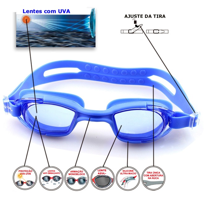 * Lentes com tecnologia HIGH DEFINITION, permite uma visão limpída e nitída embaixo da água