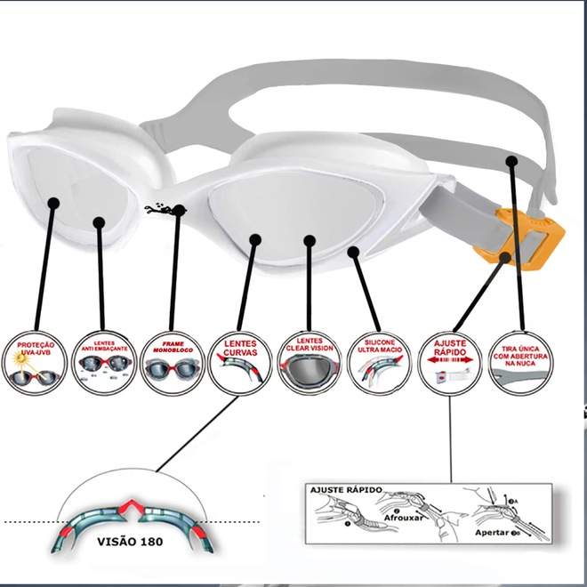 02-Diferença entre galvanoplastia e transparência: a galvanoplastia é opaca e adequada para uso sob linhas de luz fortes, como à beira-mar ao ar livre. As lentes transparentes ou semi transparentes são adequadas para uso em luz interna normal, como piscinas internas.Marca: Gold Sports
