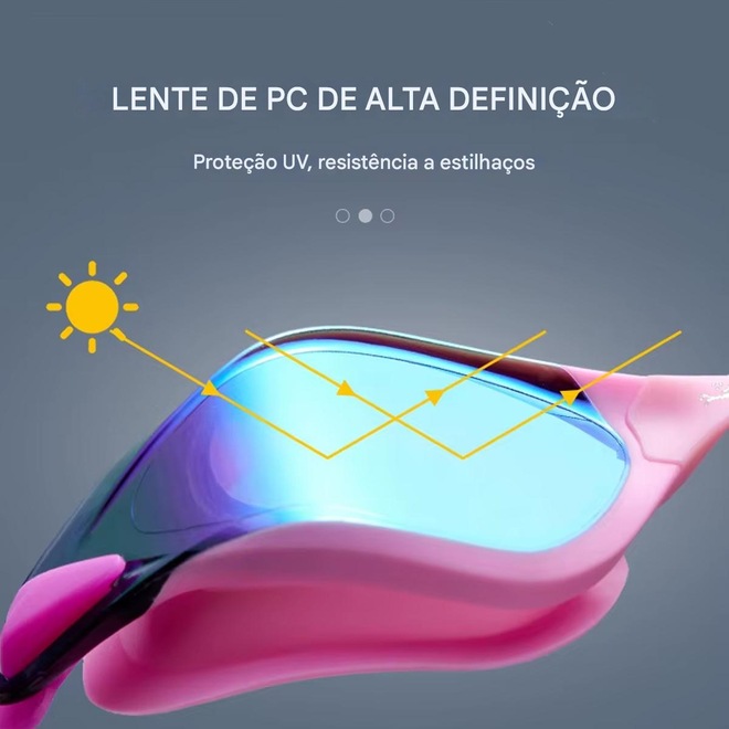 02-Diferença entre galvanoplastia e transparência: a galvanoplastia é opaca e adequada para uso sob linhas de luz fortes, como à beira-mar ao ar livre. Lentes transparentes ou semi transparentes são adequadas para uso em luz interna normal, como piscinas internas.