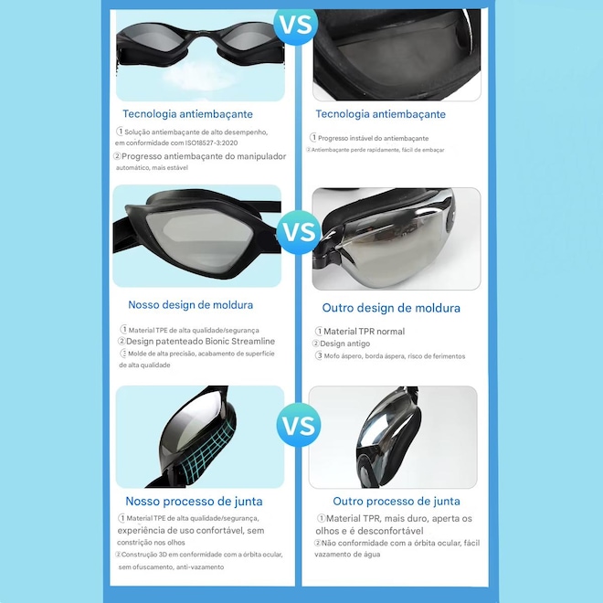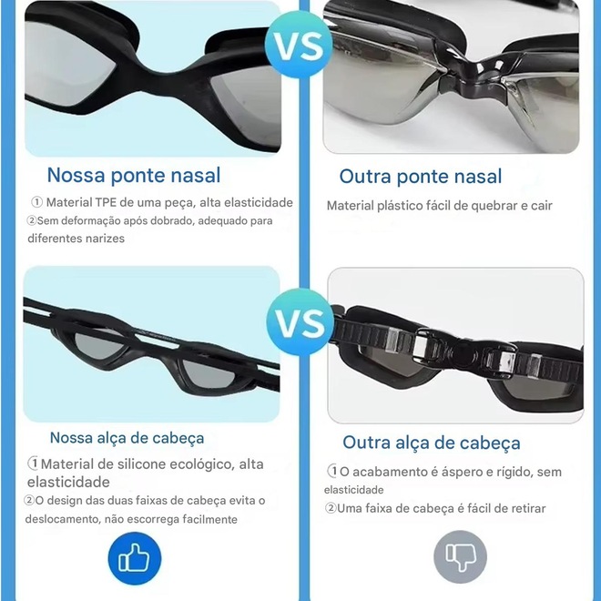 ATENÇÃO: Estes óculos de natação são óculos de competição profissionais. Os iniciantes podem se sentir um pouco desconfortáveis ao usá-los e não é um problema de qualidade do produto.