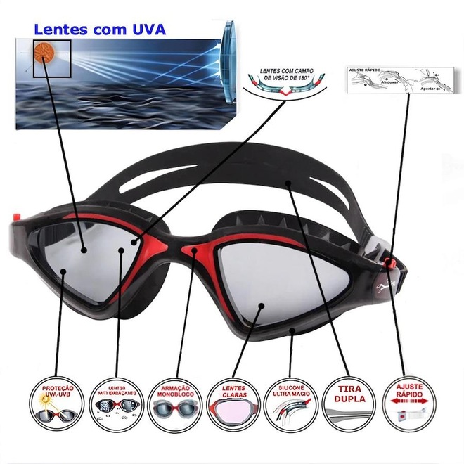 O Óculos de Natação Gold Sports Shark Performance 7.0 High Definition são projetados para atender às necessidades dos nadadores profissionais, com uma tecnologia anti-neblina inovadora que garante uma visão clara, mesmo nas condições mais desafiadoras. Equipado com lentes de grande angular, anti-fog e de alta definição: Mergulhe em águas cristalinas com a ajuda de nossa grande angular, anti-fog, e lentes de alta definição que proporcionam uma experiência subaquática nítida e imersiva. Ajuste confortável: Os óculos são criados com um material de silicone macio e durável que se encaixa confortavelmente ao redor dos olhos sem causar irritação ou desconforto, permitindo que você nade por horas. Armação e tira em silicone liquido de ultima geração ultra confortável e capaz de se adaptar a qualquer formato de rosto. Pode ser facilmente ajustado.Nossos óculos de natação apresentam um design elegante e moderno que é certo para virar a cabeça na piscina. Com uma escolha de cores elegantes e um ajuste de perfil baixo, você vai olhar e se sentir bem como você deslizar através da água. Uso versátil. Nossos óculos de natação são perfeitos para uma variedade de atividades aquáticas, incluindo natação, mergulho, Triatlo e muito mais. Se você é um iniciante ou um profissional experiente, nossos óculos são projetados para atender às suas necessidades e ajudá-lo a executar o seu melhor. Suas lentes são transparente muito confortavel para picinas fechadass, suas lentes são confeccionadas em policarbonato de ultima geração proporcionando uma visão HD, lentes com duas camadas anti-fog, proteção UVA e UVB400, armação em em silicone liquido ultra soft, tiras duplas em silicone ultra soft com ajuste rápido.