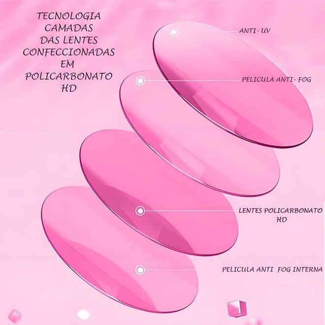 * Lentes com tecnologia HIGH DEFINITION, permite uma visão limpída e nitída embaixo da água